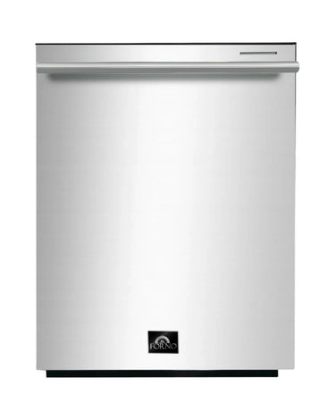 The Forno 24” built-in, low-noise 49-decibel dishwasher comes equipped with a stainless-steel front and pro-style handle. Durable stainless-steel tub with 3 baskets to provide ample loading flexibility for large dish capacity and utensils. Six wash programs, Electronic controls with a sleek LED display. Energy star, UL and CSA approved unit. Every FORNO comes with a full 2 year parts and labor warranty.