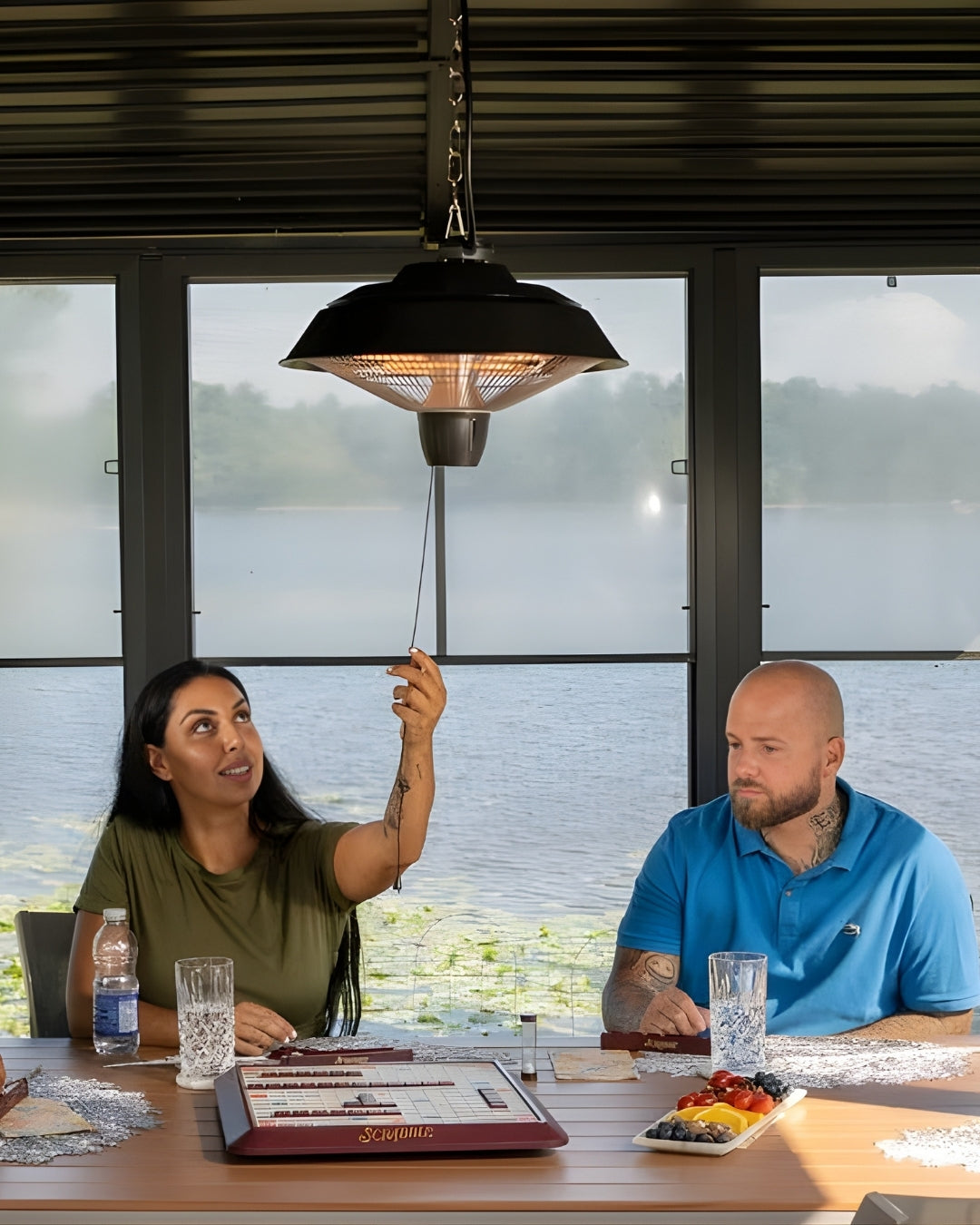 • Le chauffage infrarouge électrique pour tonnelle extérieure EnerG+™ se fixe facilement avec la chaîne et le crochet fournis.