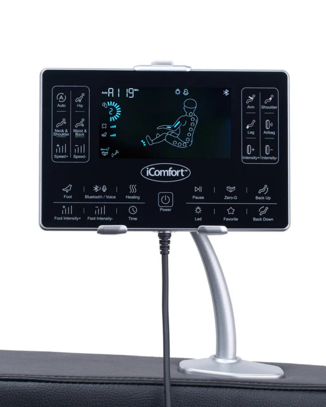 Enjoy a relaxing massage with the new iComfort IC4500 Black Massage Chair. You will feel as if you have your very own massage therapist. The uniquely designed Curved Guide rail (SL-Track) goes all the way under the thighs.